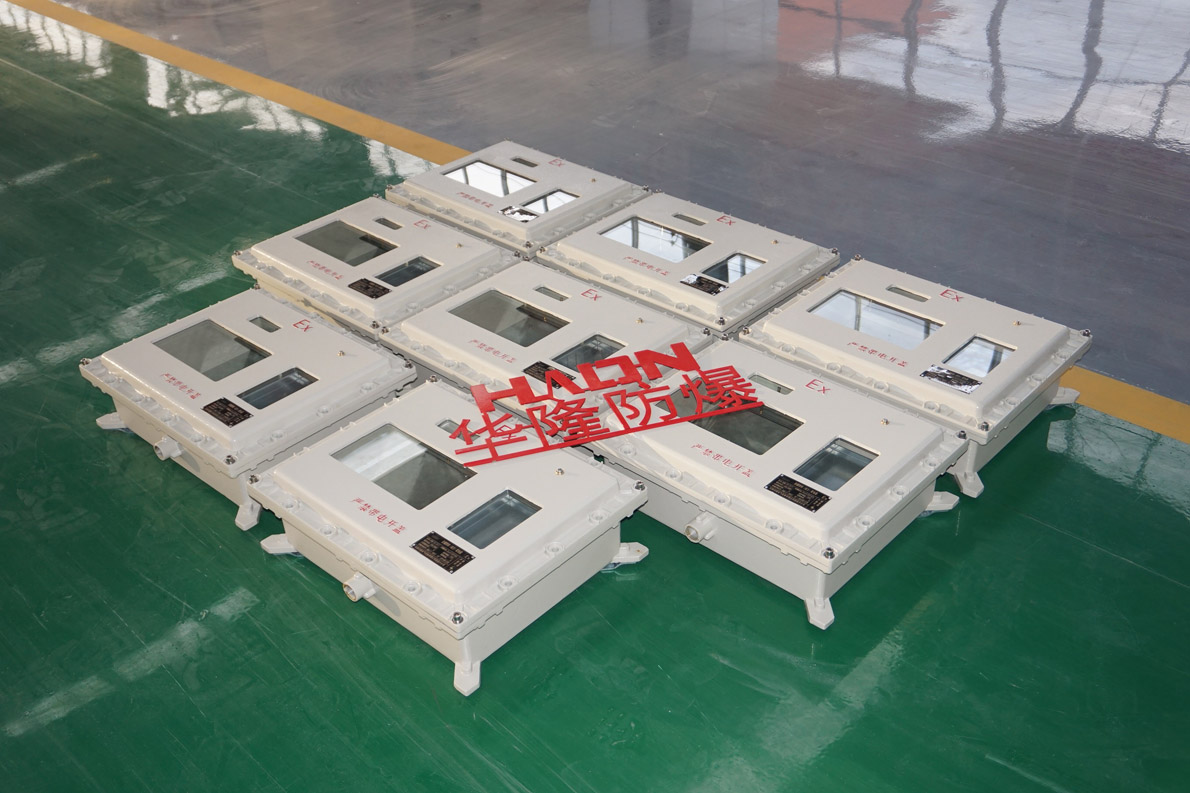 防爆配電箱的類型有很多種,最常見的有隔爆型,隔爆型箱體最關(guān)鍵的三要素:隔爆面長(zhǎng)度、隔爆面間隙、隔爆面粗糙度。通過控制這三要素,達(dá)到內(nèi)部能量不傳播到外部,如:可燃?xì)怏w或粉塵進(jìn)入到隔爆箱內(nèi),箱內(nèi)又有電氣元件產(chǎn)生的電火花或電弧,當(dāng)條件到一定的程度后產(chǎn)生箱體內(nèi)部爆炸,通過三要素控制內(nèi)部的火花不傳播到箱體外部,達(dá)到防爆的效果,很多人認(rèn)為防爆的東西就是不會(huì)爆炸,其實(shí)這是誤解了防爆的真諦,防爆的原理是不傳播爆炸,不會(huì)讓由于電氣部分而使得防爆區(qū)域大范圍的爆炸。下面華隆防爆奉獻(xiàn)幾張圖片供大家參考: