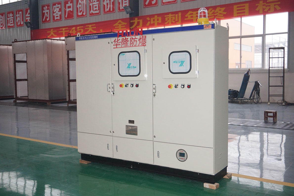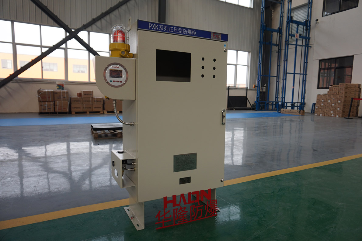 采用介質(zhì)隔離點燃源的防爆措施。即:把用戶所用的電器元件安裝在一個充滿正壓潔凈氣體的柜體內(nèi),使外部環(huán)境中易燃易爆的混合性氣體無法接觸到電器元件在正常工作時所產(chǎn)生的電火花或危險溫度,從而達到電器防爆的目的。