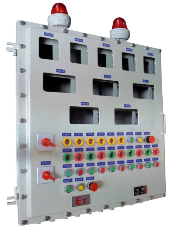 隔爆型外殼,內裝指示燈、電流表、電壓表、按鈕、轉換開關,繼電器等