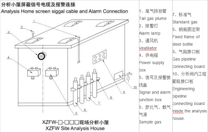8、分析小屋可將各工業(yè)領(lǐng)域中應(yīng)用的各過程分析儀表相對集中安裝,利用分析小屋公共工程統(tǒng)一供電,統(tǒng)一與控制室互傳 信號