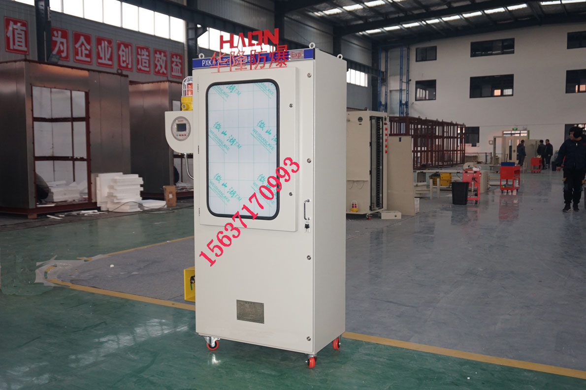 采用介質隔離點燃源的防爆措施。即:把用戶所用的電器元件安裝在一個充滿正壓潔凈氣體的柜體內,使外部環境中易燃易爆的混合性氣體無法接觸到電器元件在正常工作時所產生的電火花或危險溫度,從而達到電器防爆的目的。